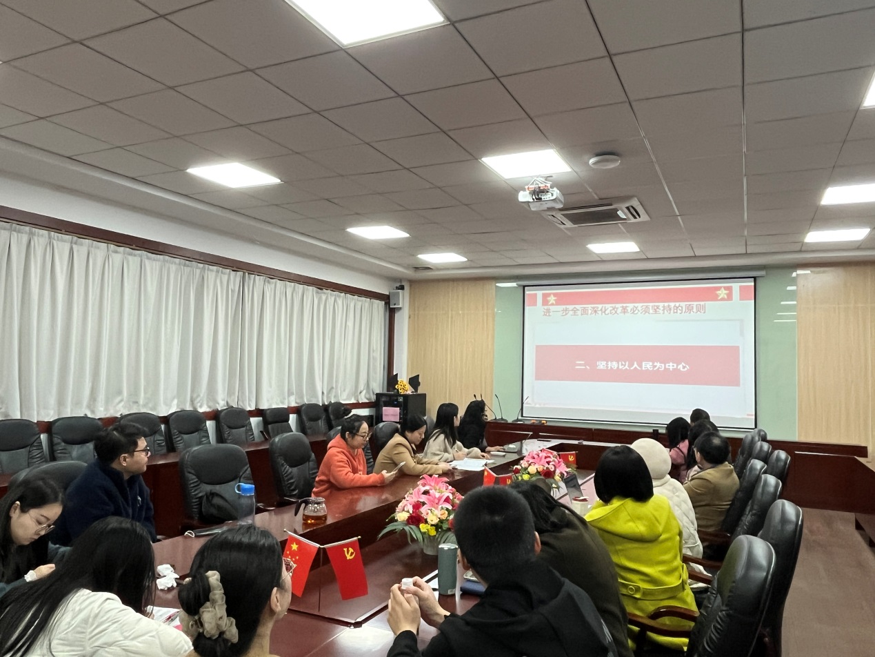 12月27日,精品人妻无码教工第一党支部在第二行政楼308室举行了学习贯彻党的二十届三中全会精神主题党日活动。本次活动以“深入学习党的二十届三中全会精神,践行‘坚持以人民为中心’的发展理念”为主题,旨在深刻领会和贯彻全会精神,尤其是全会提出的六大原则中的核心——坚持以人民为中心。此次活动由党支部书记何瑞玉主持。