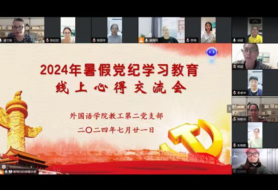 7月21日晚,精品人妻无码教工第二党支部在腾讯会议召开2024年暑期党纪学习教育线上心得交流会,支部全体党员参加。