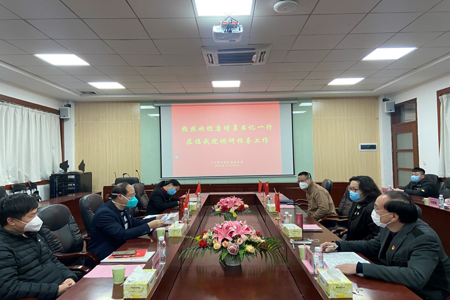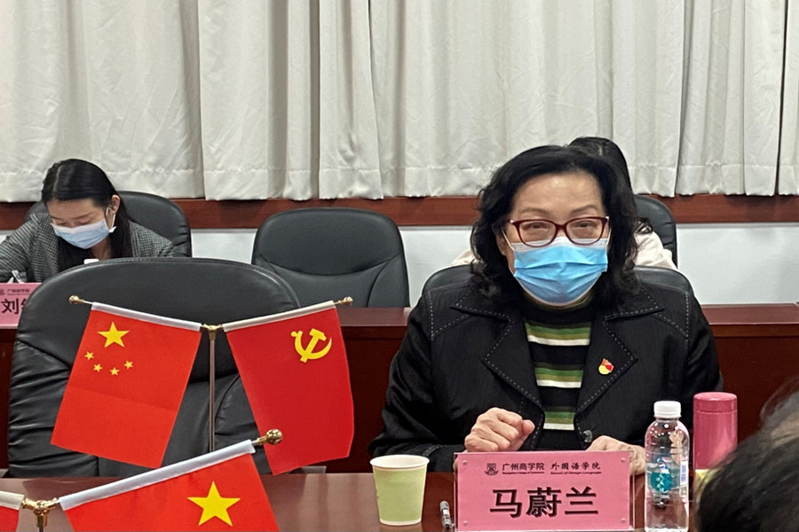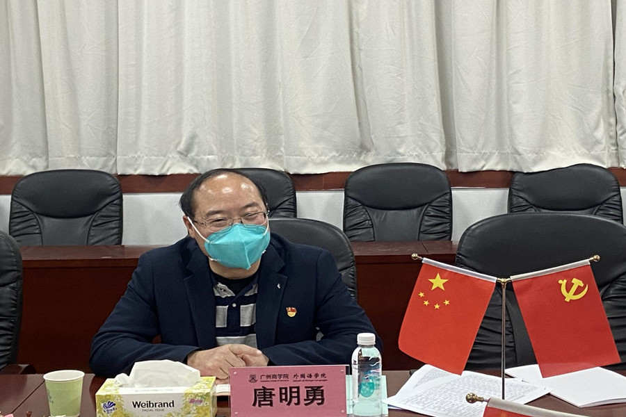 马蔚兰对唐明勇一行的到来表示热烈欢迎,并从课程设置、专业方向、师资队伍、特色亮点等方面介绍了学院基本情况。她指出,我院立足广州、面向广东、辐射全国,着力打造“外语优势,行业特色”的培养特色,在课程思政、学科竞赛、考研升学等卓有成效。徐超从党总支的结构设置、队伍配备、双融双促等方面详细介绍了我院的党建工作情况,并重点介绍了学院教师党员导师制、春华秋实讲坛和22365社会实践体系党建特色品牌。