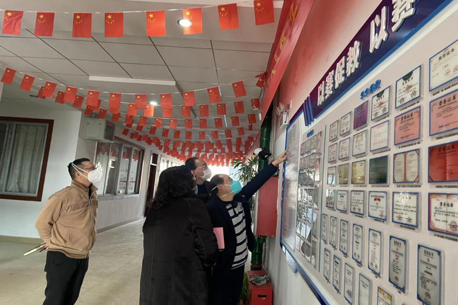 会后,唐明勇一行参观我院文化长廊,走访问候了相关教师。