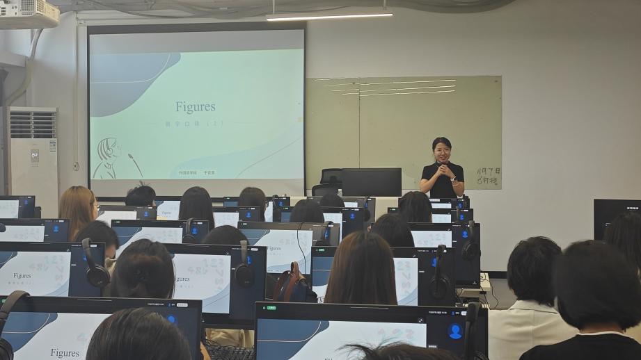 三十余位教师齐聚一堂,共同观摩了于克青老师讲授的2022级英语专业05班《汉英/英汉口译》课程。于克青以流利的英语,深入浅出地讲解了“数字口译”的文化背景、理论基础、口译技巧及实践应用,赢得了在场师生的高度赞誉。课后,英语系全体教师参与了该课程的研讨。谭静对于于克青流畅的英语发音、明确的课程目标以及课堂感染力给予了高度评价,认为学生参与度极高。陈刚对课程结构的合理性表示了充分的肯定。陈华英则强调了于克青扎实的语言功底与专业的口译素养,课程内容既丰富又注重理论与实践的结合。