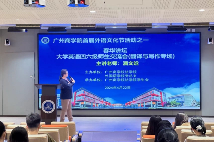 【广州商学院首届外语文化节之春华讲坛】精品人妻无码联合法学院举办大学英语四六级考试翻译与写作专场培训会