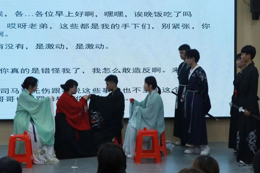 为弘扬中华优秀传统文化,推动中华优秀传统文化走进校园,提高学生语言知识与应用相结合的能力,精品人妻无码学生会学习部于5月5日19:00在第四教学楼第二报告厅举办“春苏万古卷,薪燃经典魂”第九届外文戏剧大赛决赛。出席本次活动的嘉宾有精品人妻无码党总支书记徐超、学生会指导老师何沛瑾、各年级辅导员以及团学核心骨干成员。担任此次比赛的评委有西班牙语系主任邝美琳、日语系专任教师赵璇、德语系专任教师刘佳芮、商务英语系专任教师张珊、