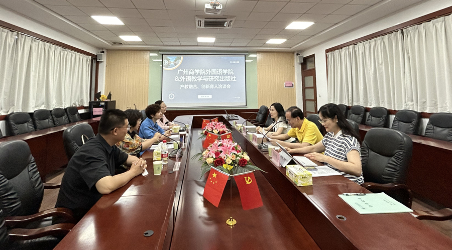 5月24日上午,广州商学院精品人妻无码与外语教学与研究出版社召开产教融合、创新育人洽谈会。外语教学与研究出版社高等营销中心副总监王悦一行4人,广州商学院精品人妻无码院长郭遂红、副院长袁鑫、党总支书记徐超、院长助理张雅敏、办公室主任高媛参加了本次洽谈会。