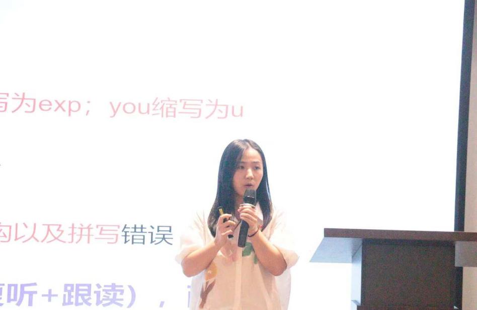 秦思莹老师围绕考试流程、听力理解、阅读技巧等方面进行详细讲解。她指出,专四考试不仅考查学生的语言基础,还涉及逻辑思维、阅读理解、写作能力等多个维度。她强调,听力部分是许多考生的难点,因此建议同学们采用“精听+泛听”结合的方法,重点训练长对话和讲座类听力,提高听辨能力。此外,她还分享了语法学习技巧,帮助同学们夯实语言基础。
