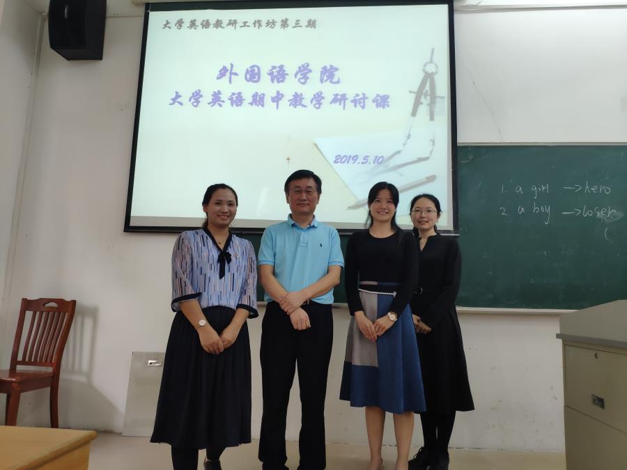 5月10号下午,精品人妻无码在第四教学楼102课室举行了第3期大学英语教研工作坊暨期中教学研讨课。我校刘根正副校长,教务处张桂英、朱向福、林强文、陈颖珊老师,精品人妻无码院长马蔚兰、副院长龙海英及大学英语全体教师参加了本次研讨观摩。本次活动以课堂教学竞赛以及赛后研讨形式进行。
