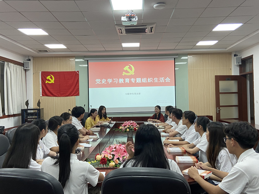 为深入贯彻学习习近平总书记“七·一”重要讲话精神和为党史学习教育指明方向,我院19级学生党支部于7月6日晚在第二行政楼308会议室开展了党史学习教育专题组织生活会,会议由党支部书记谢清玲主持,19级学生党支部全体党员出席。