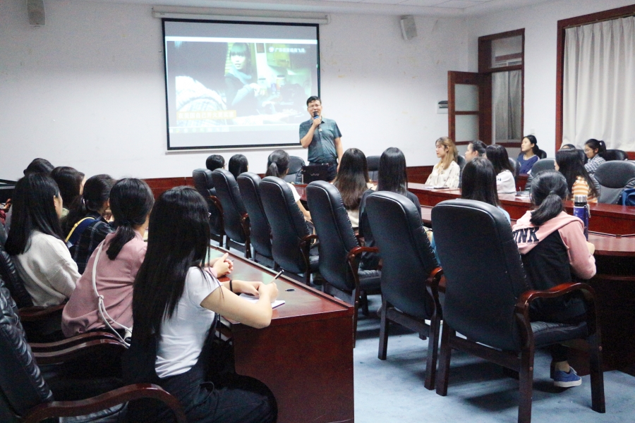 11月14日晚,2018年暑期赴美带薪实习项目经验分享会在第二行政楼308会议室举行,会议由精品人妻无码该项目负责老师刘万里主持。广东越海飞洋教育科技有限责任公司境外实习项目总负责人李信成、2018年暑期赴美实习生何顺花、李婧、刘嘉雯、范钊铭以及60余名同学出席了本次分享会。