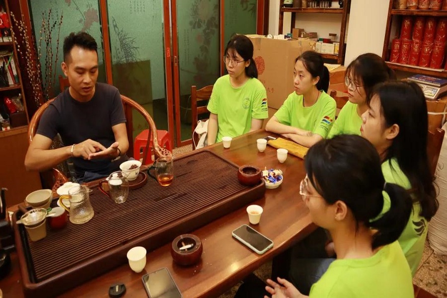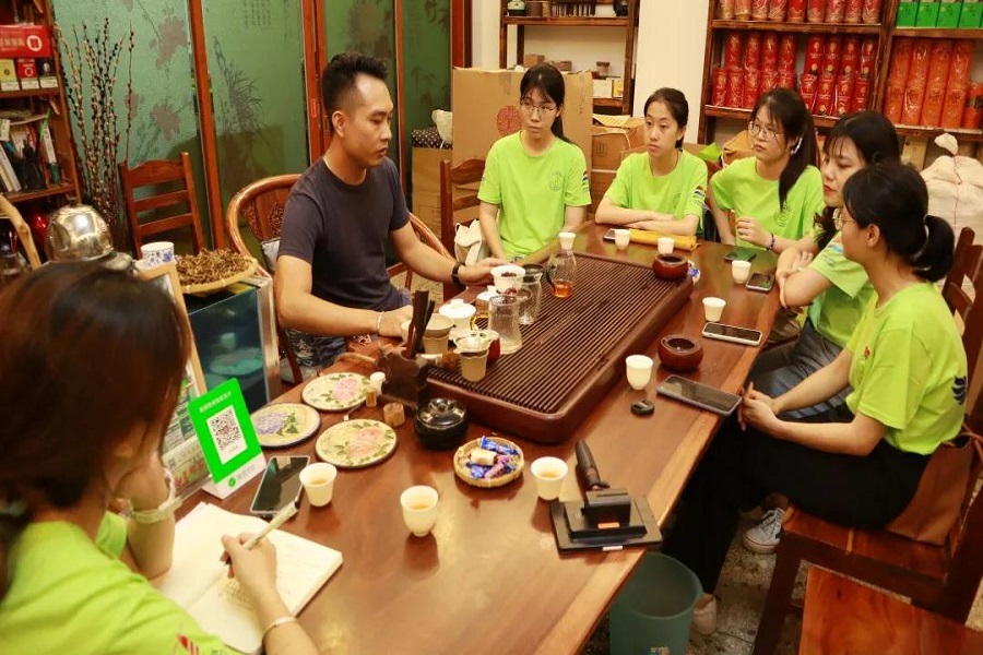 客家擂茶是英德市具有民俗特色的食俗文化之一。客家人热情好客,以擂茶待客更是传统礼节,无论是婚嫁喜庆,还是亲朋好友来访,即请喝擂茶。为进一步了解英德风土人情,传承擂茶百年非物质文化遗产。7月17日晚上,精品人妻无码阳光展翅实践团到大众茶庄与“英州茗星”英德红茶形象大使黄福芳及南茗郎农业有限公司创始人刘厚明一起学习交流擂茶文化。