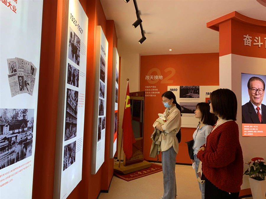 随后,李海燕带领支部全体党员参观校“四史”教育体验馆。通过展馆里一张张泛黄的黑白老照片,一段段凝结血泪的文字,一个个生动的场景仿佛就真实地展现在大家的眼前。党员们走走停停,循着历史的足迹,近距离了解了中国共产党走过的百年光辉历程;重温了改革开放以来党和国家取得的卓越成就,学习了中国特色社会主义从空想社会主义到科学社会主义的演变和发展过程,回顾了中国共产党人矢志不渝为中国人民谋幸福、为中华民族谋复兴的奋斗历程,感受了老一辈中国共产党人为初心使命而奋斗的精神和使命担当,接受了一次思想上的洗礼和深刻的党性教育。