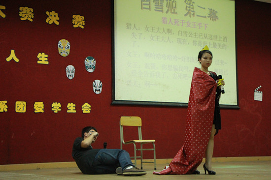经过角逐,我系13级日语班《白雪姬》获得第一名和最佳演绎奖,13级英语5班《After twenty years》获得第二名和最佳人气奖,第三名由13级德语1班《Es ist vorbei》获得,优秀奖的获得者有英语口语训练协会 《三顾茅庐》、英语1班《麦琪的礼物》、英语3班《Good morning ,Tim》