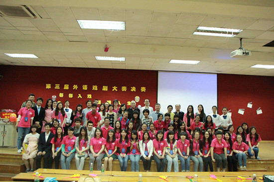 为深入学院落实“我为学风建设添光彩”各项活动,3月28日19:30,我系以“每每入戏,剧透人生”为主题的第三届外语戏剧大赛在A206隆重举行,我系党总支书记徐超,团委书记刘丽萍,团委副书记黄玉亭,10级辅导员刘万里,13级辅导员雷肖茹,学院及各兄弟系团委学生会学生干部出席了此次活动。本次大赛由英语老师蒙巧、毛文秀、张冰、外教Paul,日语老师邓亚晔、张烈、石桥谦一,德语老师童城、邓光远等9名专任老师担任评委。