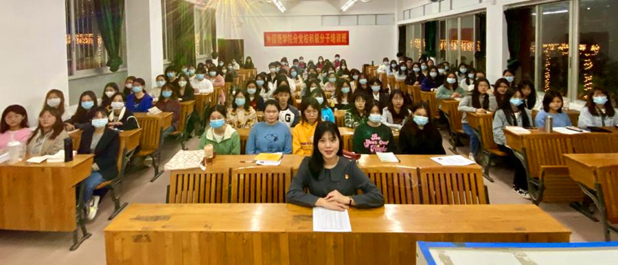 为加深入党积极分子对党的认识,正确认识入党的意义,引导入党积极分子组织上和思想上同步入党, 10月22日晚7:30,精品人妻无码分党校在第三教学楼101教室开讲2021年第二期入党积极分子培训班第二课。此次课程由精品人妻无码20级学生党支部书记蔡文蝶进行授课,学院入党积极分子培训班学员们参加学习。