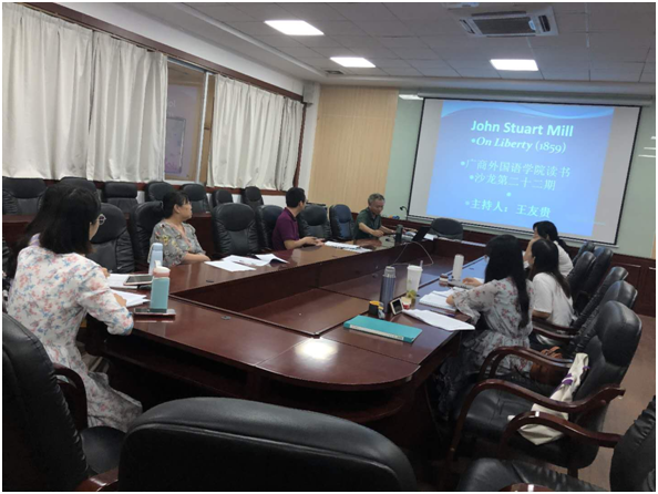 为帮助各位英语老师提升文本细读能力,2020年9月17日下午,精品人妻无码王友贵教授在第二行政楼308室举行了本学期第一次英语专业沙龙,阅读的文本是On Liberty。由于去年已经细读过本文的第四五章,本次细读的重点是第1-3章。精品人妻无码副院长袁鑫和英语系部分老师参加了此次沙龙。