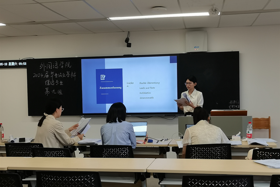 在学院高度重视下,精品人妻无码答辩工作准备充分,安排合理,组织有序,答辩整体情况良好。学院成立了答辩委员会,统筹答辩工作。参加本次论文答辩的毕业生人数较往年有所增加,两轮答辩共设45个答辩小组,其中英语、商务英语、日语、德语四个专业均设有优秀毕业论文答辩组。各答辩小组组成人员结构合理,学生分组得当,答辩现场秩序井然。整个答辩过程答辩老师和学生全部采用目标语(英语、日语或德语)进行。首先由学生全部以PPT演示的方式介绍论文结构,阐述主要观点。答辩老师们认真聆听、严格把关,就选题思路、论文结构分析等方面进行了提问,同时对同学们的论文进行了点评,进一步完善修改的意见和建议。最后,每组三位答辩老师对毕业论文成绩进行了评定。