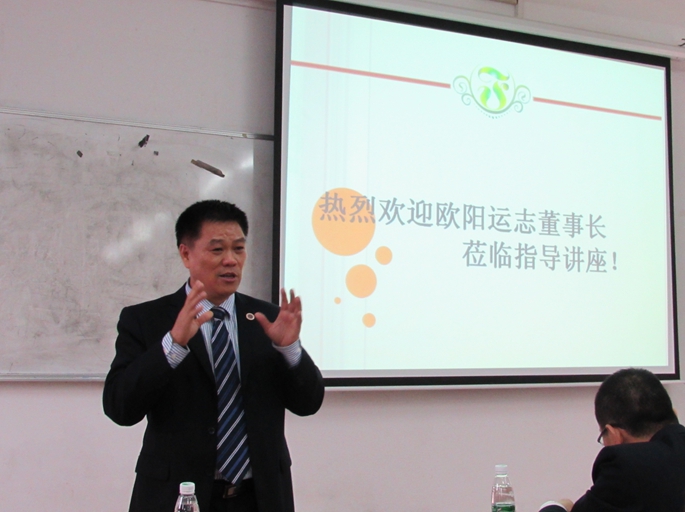 首先,欧阳董事作长自我介绍并为学生分享其创业经验。欧阳董事长从成功的十个要素为载体,引用小故事,深入浅出,阐述了毕业生应具备的基本素质条件。如何能够胜任自己的工作如何选择职业?欧阳董事长从企业组织架构为切入点,不同职能部门所需的人才工作中应注意的细节问题以及晋升的条件。对于职业的选择他指出:“没有最好的职业,只有适合自己的职业。”接下来讲述如何撰写简历以及应对面试,剖析了应聘中可能遇到的问题及其解决办法,教育学生要多做慈善之事,不断完善、改变自己,传递正能量。在互动环节,欧阳董事长依依解答了同学们关注的问题。讲座结束徐超书记作精彩总结陈辞,随后大家在教学楼门前合影留念。