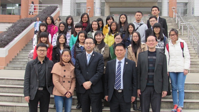 困惑?不知所措?任性?如何根据现下企业需求指导大学毕业生就业、择业和创业,于2014年12月25日在教学楼b204特邀请华商同盟资产管理有限公司董事长、广州狮岛消防工程有限公司总经理、华商EMBA广州同学会名誉会长欧阳运志先生莅临我校指导讲座。外语系副主任袁鑫,党总支徐超书记,以及张德高总经理一行7人参与本次交流活动。