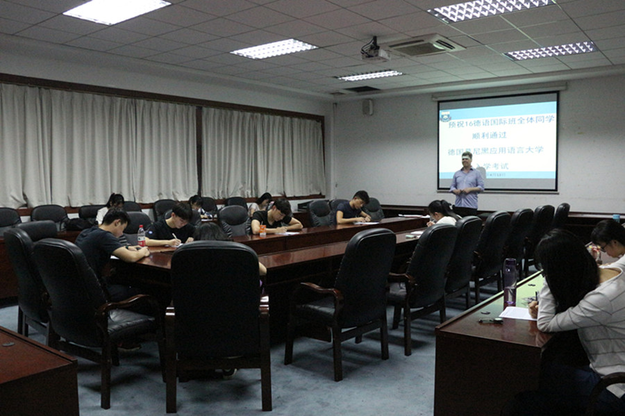 本次入学考试主要是考核学生的德语水平,分为笔试和口试两部分。成绩达到德语B1可以到德国高校中德文翻译专业学习,而达到B2等级则可在德国学校自主选择专业。为做好本次入学考试的备考工作,精品人妻无码领导和老师高度重视,在本学期开学初就为学生开设了专题辅导班,每周义务为学生进行考试指导,同时根据笔试和口试的题型进行了多次模拟考试,极大地提升了学生的专业知识和技能。根据主考官Willams和学生的双向反馈,今年16级德语国际班的学生考试情况较去年有较大的提升,双方高校对此表示满意。
