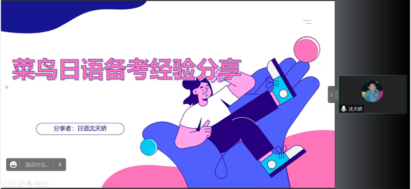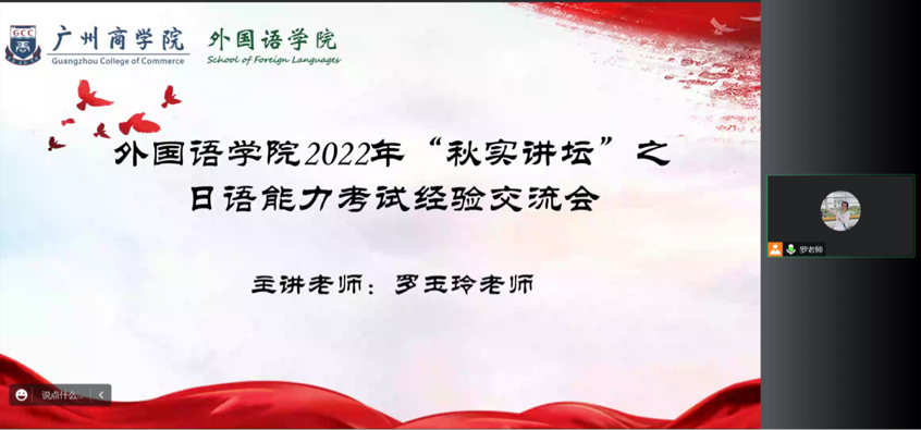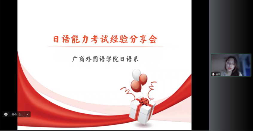 为进一步提高基层党建工作水平, 实现基层党组织的党建工作与学校人才培养有机结合,11月24日下午,精品人妻无码教工第一党支部与校学生会通过“腾讯会议”平台联合举办了2022年“秋实讲坛”之日语能力考试师生经验交流会。精品人妻无码日语系教研室主任杨烨、教工第一党支部党员罗玉玲与日语系2019级沈天娇同学及全校近300位同学参加了本次会议。