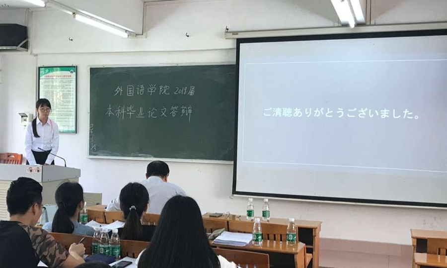 5月5日上午8:30,论文答辩正式开始。答辩过程中学生使用PPT展示论文主要内容,并就写作背景、主要内容和创新及不足之处做了简要陈述。答辩老师们就选题思路、论文结构分析等方面进行了提问,同时对同学们的论文进行了详细的点评和指导,并对部分学生的论文存在的问题提出了进一步完善修改的意见和建议。整个答辩过程答辩老师和学生均采取外文进行提问和答辩,最后,答辩老师认真考核学生毕业论文的完成情况,对毕业论文成绩进行了客观公正的评定,总评分数不合格的学生将进入第二轮答辩。