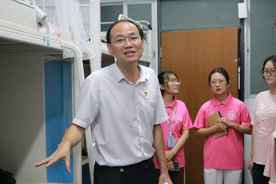 在走访过程中,校领导们与新生们进行了亲切的交流。小至内务整理,悉心问候生活用品是否准备齐全,同时全面了解同学们来校后的感受,对学校的印象等。勉励同学们宿舍是多年学习时光中待的最长的地方,舍友也是学习生活中最亲密的伙伴,良好的宿舍环境和融洽的宿舍关系至关重要。