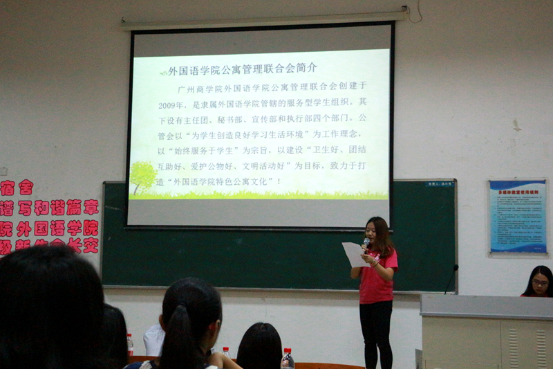 2016年11月6日星期日晚上7:30,我院公寓管理联合会在A2-308举办了以“共创温馨宿舍,谱写和谐篇章”为主题的2016级舍长大会。我院党总支书记徐超、团委书记刘万里、公寓管理联合会指导老师林蔚出席了本次大会。