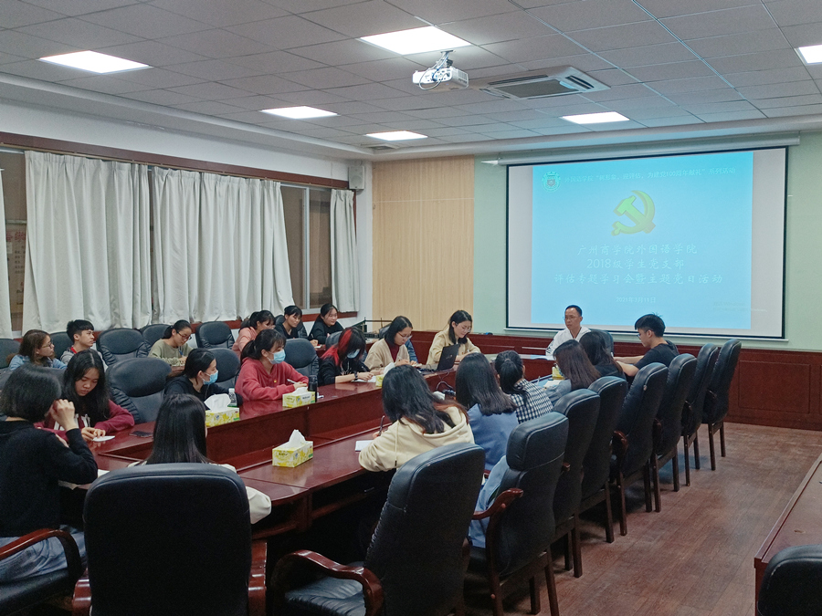 3月11日中午,我院18级学生党支部在第二行政楼308举行“树形象,迎评估,为建党100周年献礼”系列活动之评估专题学习会。18级学生党支部31名党员全体出席了本次学习会,会议由学生党支部书记刘万里主讲。