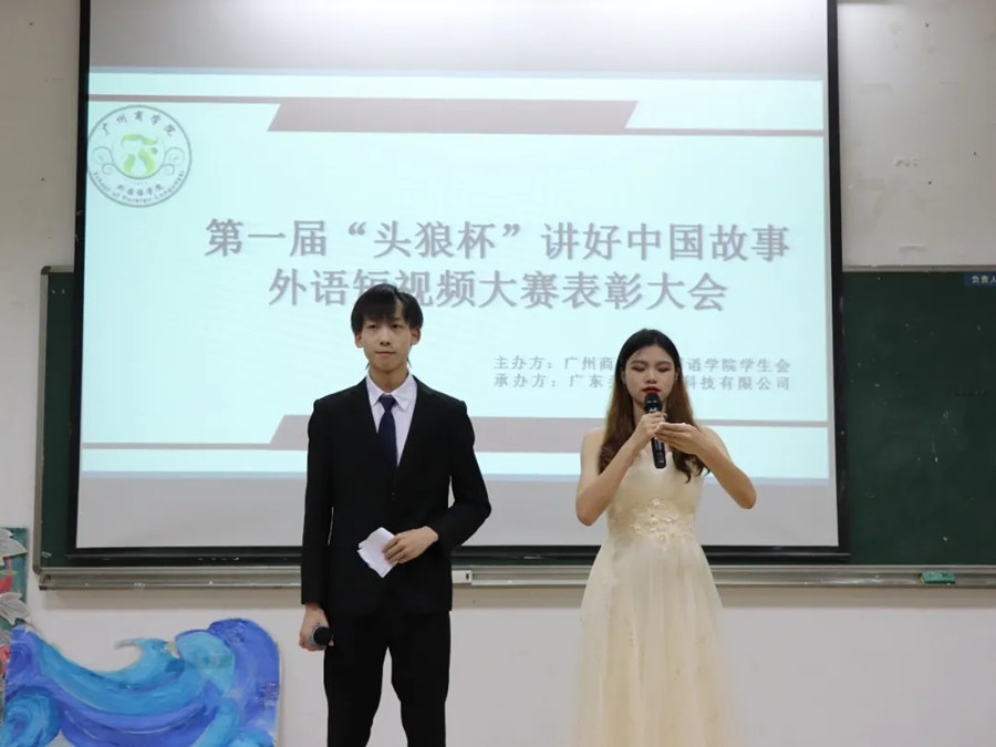 为积极响应国家“讲好中国故事,提升文化传播”的号召,进一步推进学院学风建设活动,广州商学院精品人妻无码与广东头狼教育科技有限公司合作举办了第一届“头狼杯”讲好中国故事外语短视频大赛。为了给予参赛者肯定,并对他们的优秀作品进行表彰。精品人妻无码教工党支部及精品人妻无码学生会于2021年6月17日19点在四教第二报告厅开展了精品人妻无码2021年第一届“头狼杯”“讲好中国故事”外语短视频大赛表彰暨分享会。