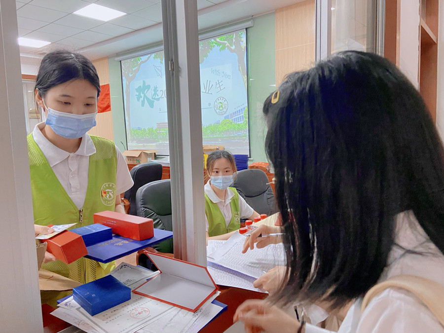 本次毕业材料的发放内容包括毕业证、学位证、报到证、四六级证书、毕业合照等,面对2021届540余名毕业生的近千份材料,发放工作容不得丝毫差错和懈怠。在刘丽老师、黄士库老师和谢清玲老师的指导下,19级学生党支部的同学们分为8组,从毕业材料的装袋、反复核查到材料的正式发放,19级学生党支部的同学们不怕困难、恪尽职守,参与到服务毕业生的最前线,不仅发挥了党员的模范带头作用,同时也使志愿服务精神深入实践。
