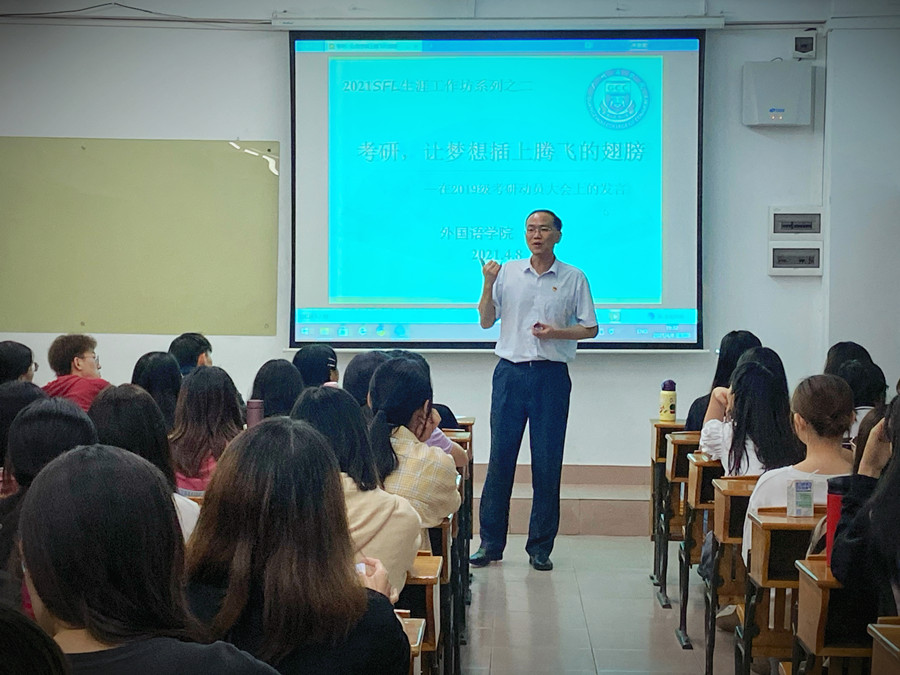 我院举办本次考研动员大会2019级专场,是成立“2021 SFL生涯工作坊”的又一次成功探索,也是学院践行英语教育小教师、涉外行业小职员、 跨境贸易小老板和考研出国高层次人才“三小一高”培养特色的重要举措,让2019级同学们获悉了最新的考研情况,及早明确考研目标及复习方向,以积极乐观的心态迎接考研,让梦想插上腾飞的翅膀。