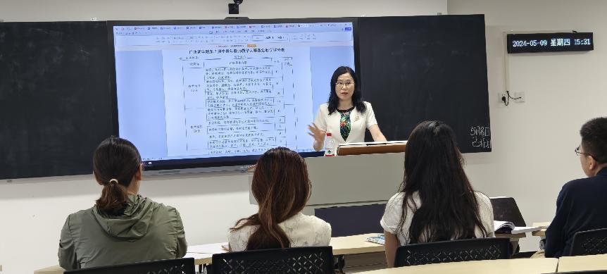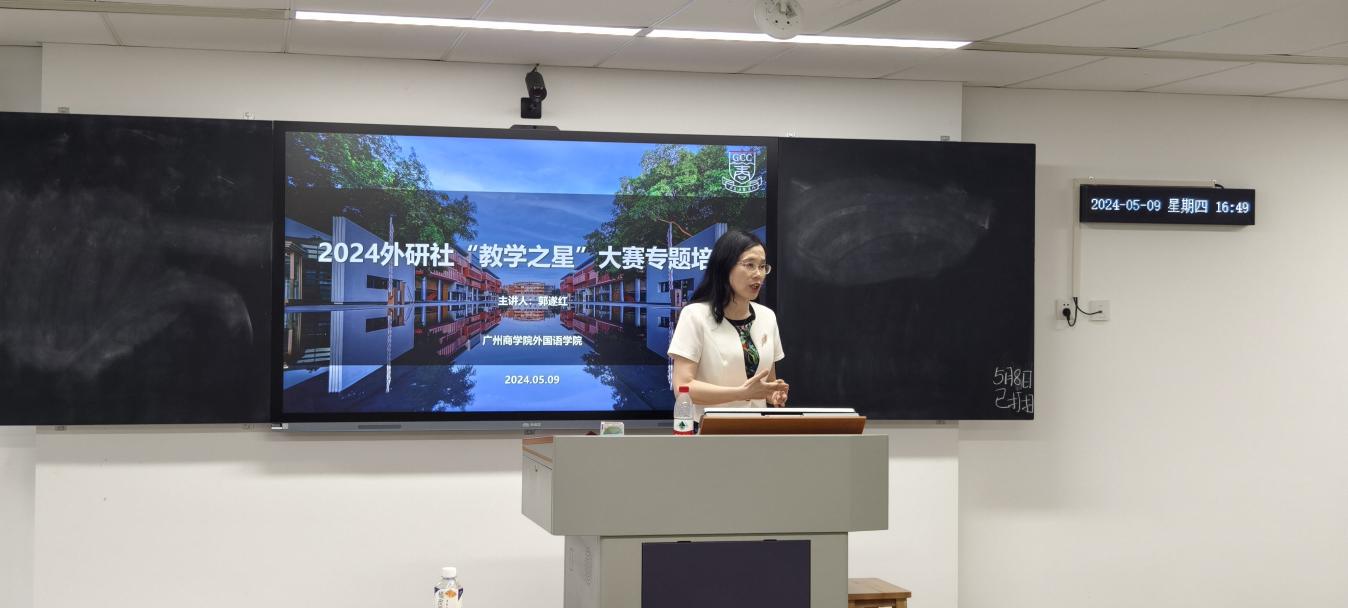 5月9日下午,精品人妻无码在八教407教室举行了第七届青年教师教学大赛暨2024年外研社“教学之星”大赛专题培训讲座,由精品人妻无码院长郭遂红教授主讲,参加第七届青年教师教学大赛以及2024年外研社“教学之星”大赛的老师和学院部分教师参加了专题培训。本次专题培训讲座也是广州商学院首届外语文化节之名师讲坛以及精品人妻无码青年教师教学能力提升工程讲座之一。