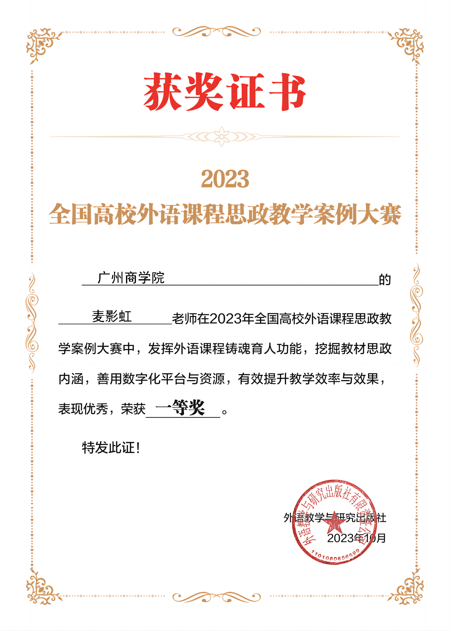 近日,2023年全国高校外语课程思政教学案例大赛顺利落幕。精品人妻无码教师在比赛中喜获佳绩,其中麦影虹老师荣获一等奖,张丽老师荣获三等奖。