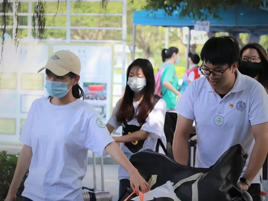 党员志愿者协助新生搬运行李