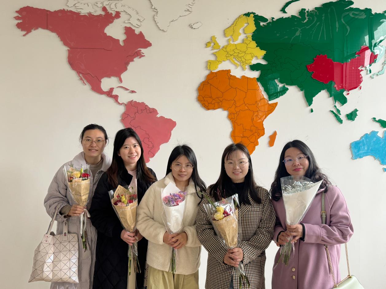 当一束束鲜花送到她们手中时,女教师们的脸上都洋溢出了灿烂的笑容,那笑容就如同手中鲜花一般绚烂夺目。她们纷纷表示,这束鲜花不仅带来了视觉上的美感和嗅觉上的愉悦,更重要的是让她们在这个节日里感受到了外院大家庭的温暖以及同事们的支持与鼓励。馥郁的玫瑰、清雅的康乃馨与向阳的向日葵交织成束,既寓意女性的柔美坚韧,也传递着学院对“她力量”的真诚礼赞。收到鲜花的女教师们惊喜不已,笑靥如花,办公室内暖意融融,节日的喜悦在欢声笑语中流淌。