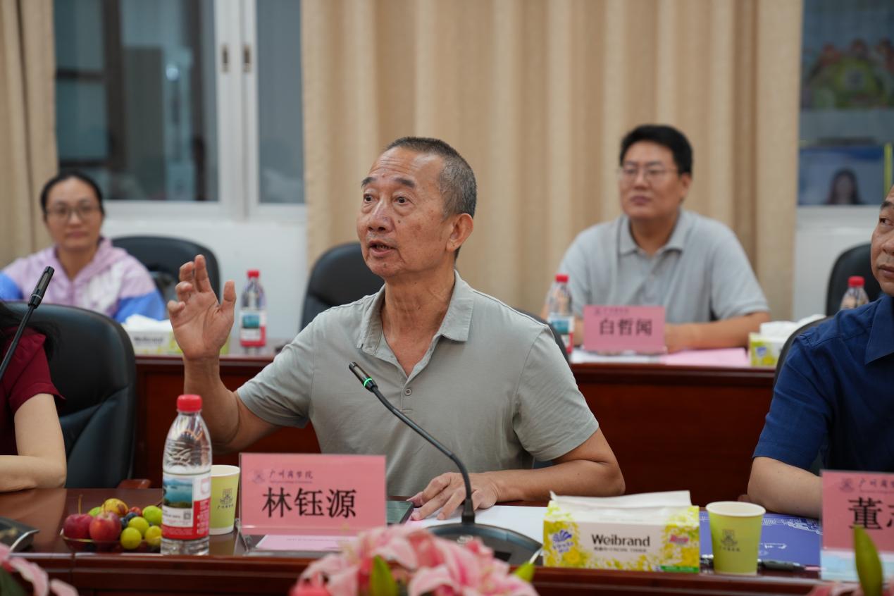 随后,艺术设计学院院长林钰源从学院介绍、教学科研工作成果、人才培养定位及举措三个维度,系统汇报了学院整体发展状况。艺术设计学院专业设置覆盖多个核心领域,形成了“设计+技术+文化”的特色专业集群,基于学院及专业的办学理念和发展目标,林钰源院对近年学院所获得的科研成果进行了展示。林钰源院长重点汇报了人才培养定位与举措,他明确提出学院的核心培养目标是打造“新时代高素质应用型艺术设计人才”,致力于将艺术设计学院建设成为“设计界新粤军的黄埔军校”。为实现这一目标,学院构建了“全链条、多维度”的人才培养体系,系统提升学生的艺术素养、美学眼界与人文底蕴。此外,林钰源院长特别强调 “教师培养与学生培养同等重要”,提出“让艺术学院成为新教师成长的摇篮”的发展理念,为新教师制定的成长方案,通过资深教师传帮带、定期开展教学观摩与评课、开设人文艺术讲堂等举措,确保新教师从“青涩入门”到“骨干成长”,在实现个人专业价值的同时,为学院教育教学质量提升注入持续动力。