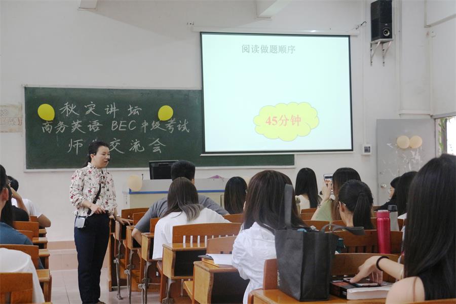 10月9日下午16:20,由精品人妻无码教工党支部主办,精品人妻无码学生会承办的“秋实讲坛——BEC中级考试师生交流会”于三教G06课室举行。教工党员、BEC考官伍彩芬副教授主讲本次讲座。