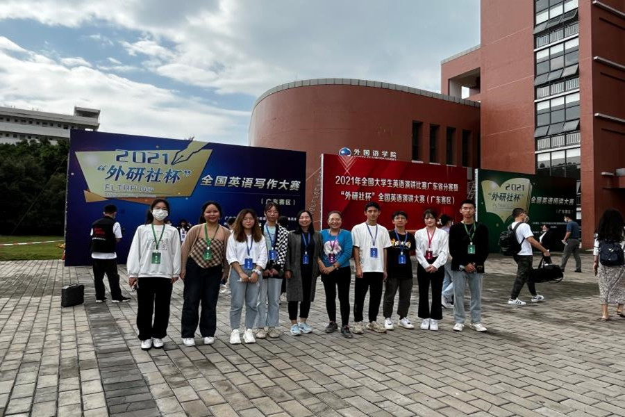 11月6日,2021年“外研社· 国才杯” 全国英语写作、英语阅读、英演讲三大赛广东赛区复赛在韶关学院拉开帷幕。比赛当天,在领队和指导老师李卓华和指导老师邵春发的陪同下,我校的9名优秀学生选手一同前往韶关学院参赛,获得英语写作大赛一等奖1项、英语演讲大赛三等奖1项的优异成绩。