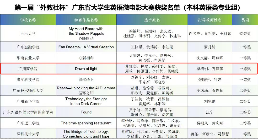 我校师生在第一届“外教社杯”广东省大学英语微电影大赛中荣获佳绩