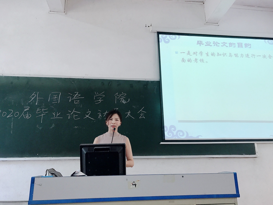 9月16日-9月19日,精品人妻无码副院长袁鑫、日语专业系主任杨烨、英语系主任程瑜瑜、德语专业系主任周昳旸、商务英语系主任李望华先后分别为2020届日语、英语、德语、商务英语专业的毕业生举行了四场“毕业论文写作动员大会”。
