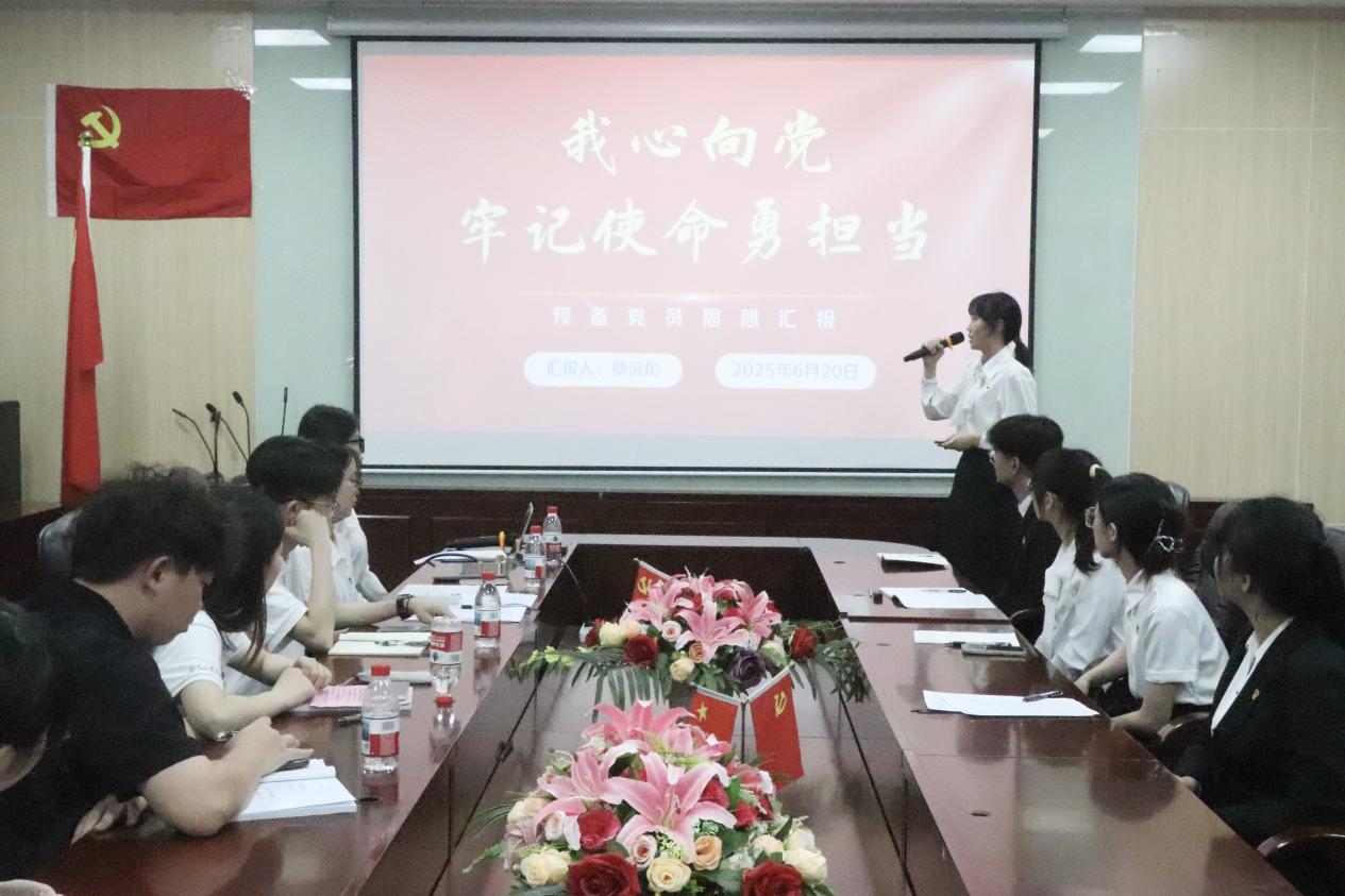 精品人妻无码学生第二党支部于6月20日中午在第二行政楼308会议室顺利开展预备党员转正大会暨党员政治生日活动。参加本次会议的有精品人妻无码学生第二党支部书记谢敏丽,教师党员庄菲菲、陈钰洵、李思浩,全体学生党员。