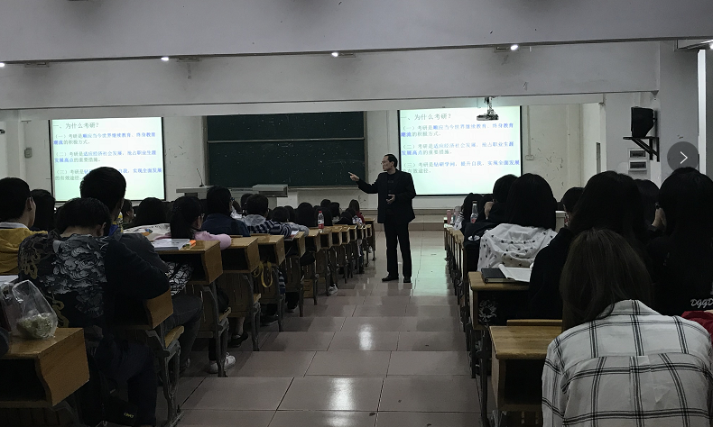 为了让同学们看清考研形势、坚定信念,明确目标、解除疑惑,更好地规划以得到更高层次的深造,3月13日、3月14日我院在一教111举办两场以“考研,让梦想点亮人生”为主题的考研动员大会,特邀学院党总支徐超书记主讲,参加活动的学生覆盖到2015级全体学生。
