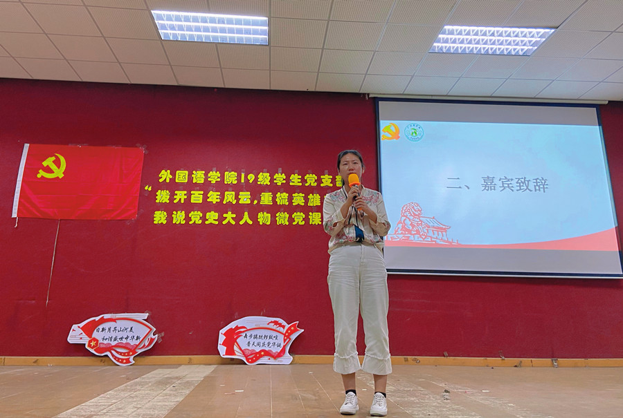 历史因铭记而永恒,精神因传承而不灭。为献礼中国共产党百年华诞,引导19级学生党支部师生学史明理、学史增信、学史崇德、学史力行,精品人妻无码19级学生党支部于2021年6月2日晚七点在一教206开展“拨开百年风云,重梳英雄故事”我说党史大人物微党课大赛。出席本次活动的有精品人妻无码19级学生党支部党员及19、20级入党积极分子代表,精品人妻无码党总支组织委员刘丽、19级学生党支部书记谢清玲、19级学生党支部教工党员兼学生会指导老师伍思颖担任本次大赛的评委。