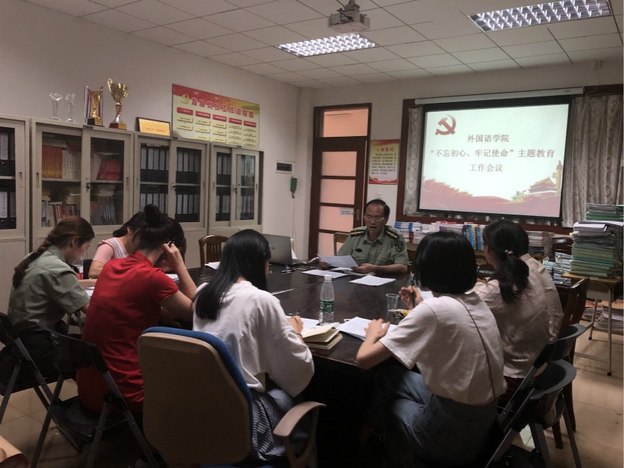 为响应省委教育工委教育系统“不忘初心、牢记使命”主题教育第二批学习工作部署和要求,为全力推进主题教育,9月23日,精品人妻无码党政联席会议在第二行政楼302举行,学院院长马蔚兰教授,副院长袁鑫,党总支书记徐超出席了会议。会议落实第一议题制度,共同学习了习近平在“不忘初心,牢记使命”主题教育工作会议上的重要讲话精神,研讨了校党委主题教育的总体要求,活动内容和工作要求,统筹推进《外国语学校“不忘初心,牢记使命”主题教育方案》各项工作。