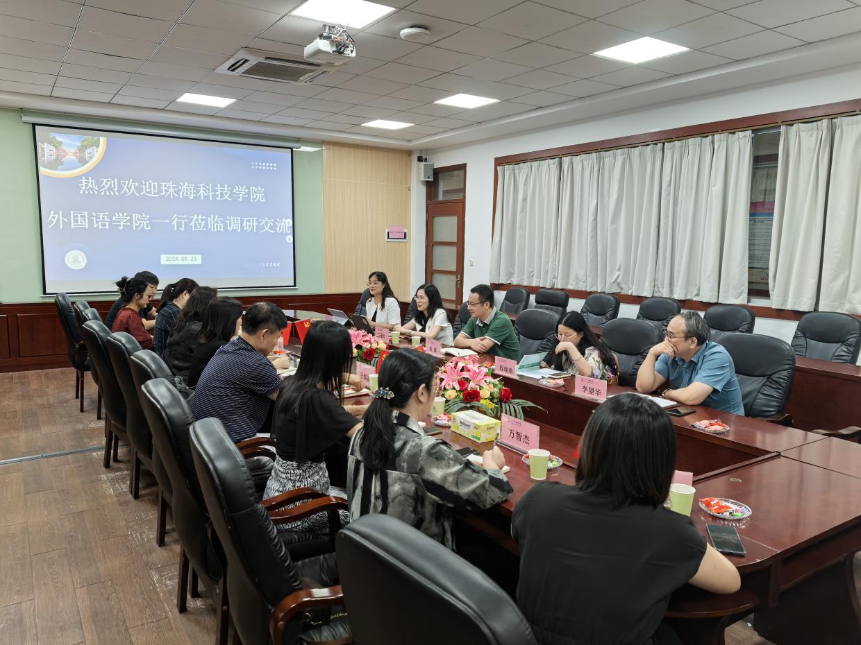 9月23日上午,由珠海科技学院精品人妻无码院长王晶教授带队一行十人莅临精品人妻无码进行教学评估、课程建设、专业建设、师资队伍建设、学科建设等工作调研交流,调研交流会在第二行政楼308 举行,精品人妻无码院长郭遂红、副院长袁鑫、院长助理张雅敏出席会议,英语及商务英语系主任、办公室主任、教务员参加会议。