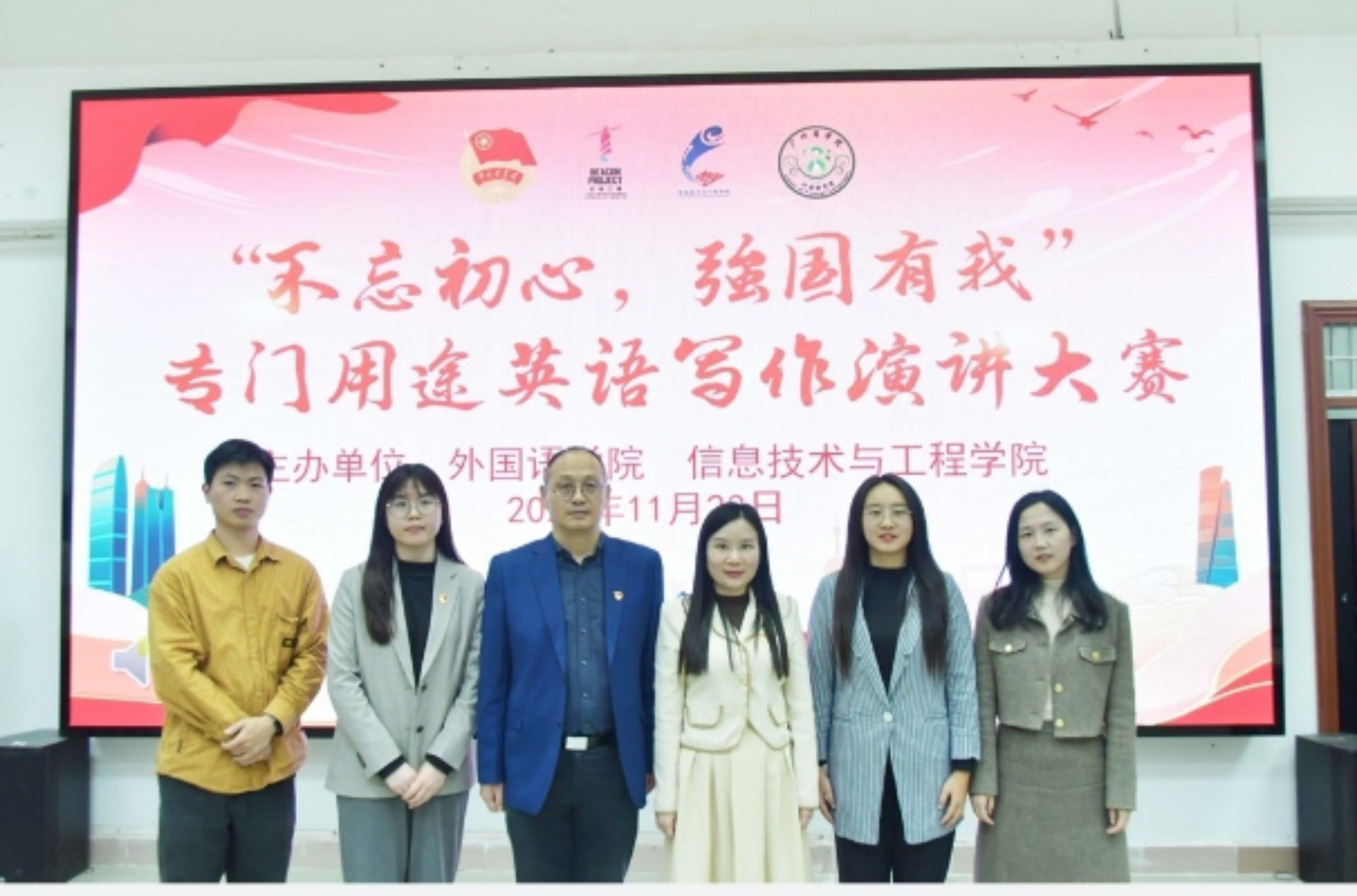为提升二年级计算机相关专业学生用英语讲好中国故事的能力,11月23日晚,“不忘初心、强国有我”专门用途英语写作演讲大赛决赛在实训楼209教室举行。本赛事由精品人妻无码主办,信息与技术工程学院、现代信息产业学院协办,整个赛程包括班级作文初赛、班级视频复赛、院级演讲决赛三轮。出席本次决赛的嘉宾为精品人妻无码党总支书记徐超、信息与技术工程学院辅导员朱国华,比赛评委为精品人妻无码大学英语二教研室姚丽芳老师、唐海民老师、董璐老师、向泽广老师、陈紫钰老师,参赛选手为2022级信息与工程学院、现代信息产业学院各班级晋级决赛的21名学生。