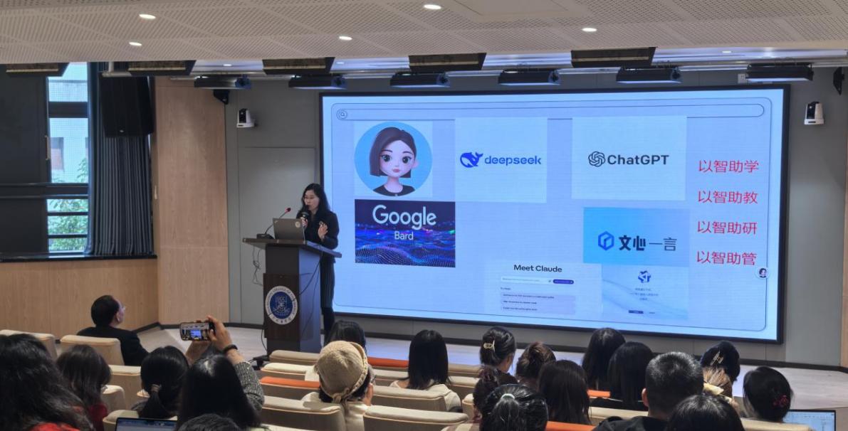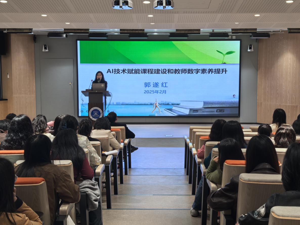 为帮助教师利用AI赋能外语教学,推动课程建设,提升教师的数字素养,2月20日下午,我院在第八教学楼203阶梯教室举办了AI技术赋能课程建设和教师数字素养提升专题讲座,讲座由精品人妻无码院长郭遂红主讲,精品人妻无码全体教师参与了讲座。