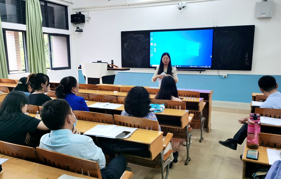 2021年11月4日下午14点,精品人妻无码英语系在四教306课室开展了本学期期中教学检查研讨课。校督导王玉芝、杨家华老师,校教务处何志强副处长等4名老师,精品人妻无码袁鑫副院长、英语系及我院28位专任老师参加了本次研讨课。