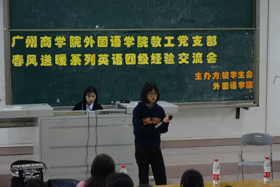 11月23日,我院党总支宣传委员、大学英语(1)教研室主任潘文晗老师与我院李婉萤同学分享了大学英语四级备考的经验。潘文晗根据当前大学英语教学指导委员会的要求,结合自身多年的教学经验,详细分析了最新的大学英语四级考试题型,传授了相应的考试策略,同时向参会的同学提出以考促学,真正提高英语的实际应用能力的要求。李婉萤则建议同学们丰富英语的学习方式,通过多看英语新闻、影视英语和综艺脱口秀等方法提高英语的听、说、读、学、译的能力,从而提高大学英语四级的考试通过率。师生的分享,赢得同学们的广泛好评