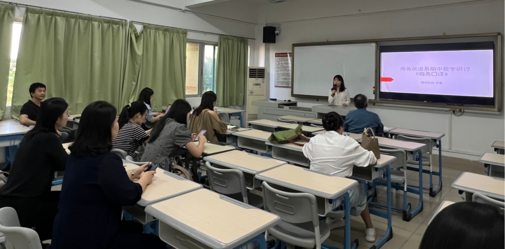 11月12日下午,我院商务英语教研室期中教学研讨课在国际楼406教室成功举办。此次公开课由商务英语系的罗曼老师主讲,来自商英2202班和商英2204班的40名同学共同参与了本次商务英语口译课堂,商务英语系的全体教师参加了教学观摩与研讨。