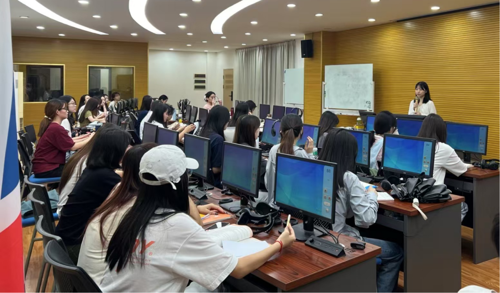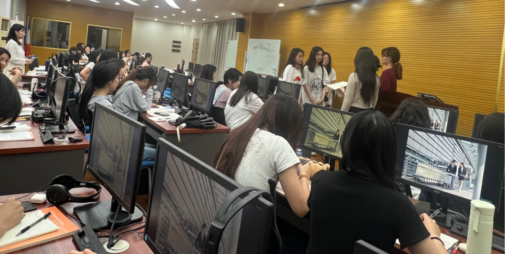 课后,商英系全体教师移步至国际楼309教室,开展了一场深入的研讨会。罗曼老师首先介绍了本次课的课堂教学设计以及教学目标,并回答了老师的提问。与会老师们对罗曼老师的授课给予了高度评价,并就如何进一步提高商务口译课程的教学质量进行了深入交流和探讨。皇婉贞老师提出,关于译前准备过程中专业词汇和术语的教学,可以结合具体的语境,适当增加该环节的趣味性和互动性,帮助学生更好地理解术语同时加深记忆。雷鸣老师对学生任务展示环节提出了宝贵的意见,他指出学生根据商务场景设计口译内容,在展示前应该进行润色使之更符合目的语的表达习惯,在展示时应鼓励学生脱稿,从而达到理论和实践相结合提升口译技能的目的。张珊老师结合自身的AI辅助教学经验,指出商务口译课程可以利用超星学习通AI助教更好地进行课堂管理以及提供作业反馈。
